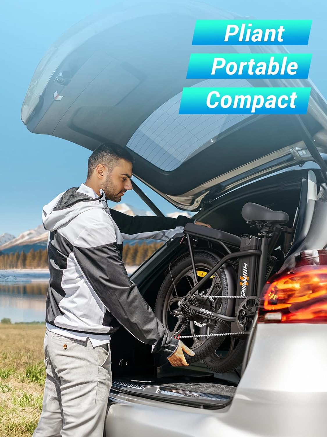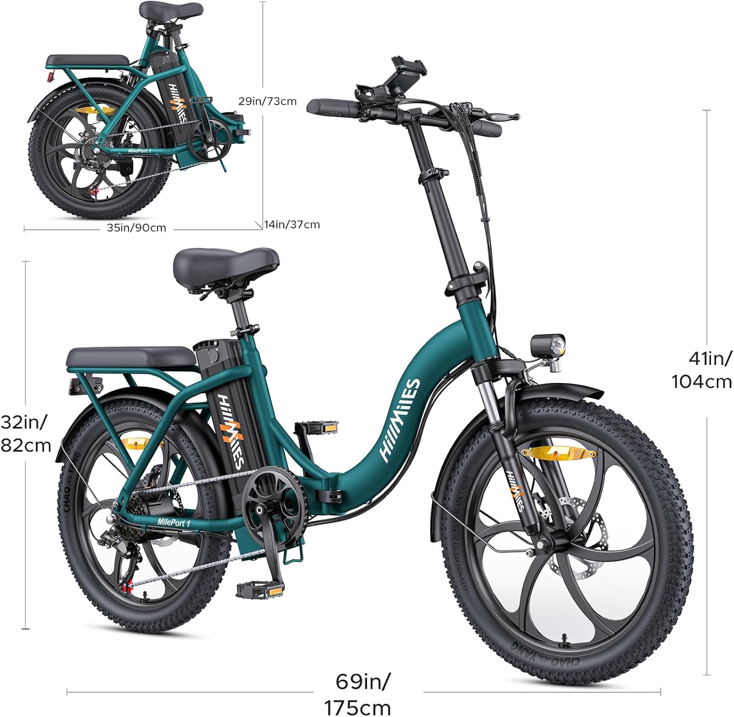 MilePort 1 Electric Bicycle for Adults, 250 W Folding Electric Bicycle with 36 V 13 Ah Removable Battery, Speed 25 km/h and Range 100 Km, 20 x 3.0 Inch Fat Tyres E-Bikes for City Commuters